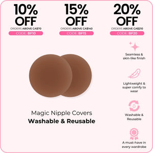 These Magic Nipple Covers are essential in every wardrobe. Seamless, lightweight, with a skin-like finish, these Magic Nipple covers are sure to blend effortlessly into your skin, staying undetectable under your top.