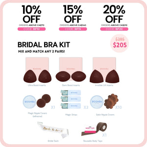 Get completely wedding-ready with the BOOMBA’s Bridal Bra Kit Bundle that has everything a bride needs. From preventing wardrobe malfunctions to creating a more flattering shape, this bundle got you covered.