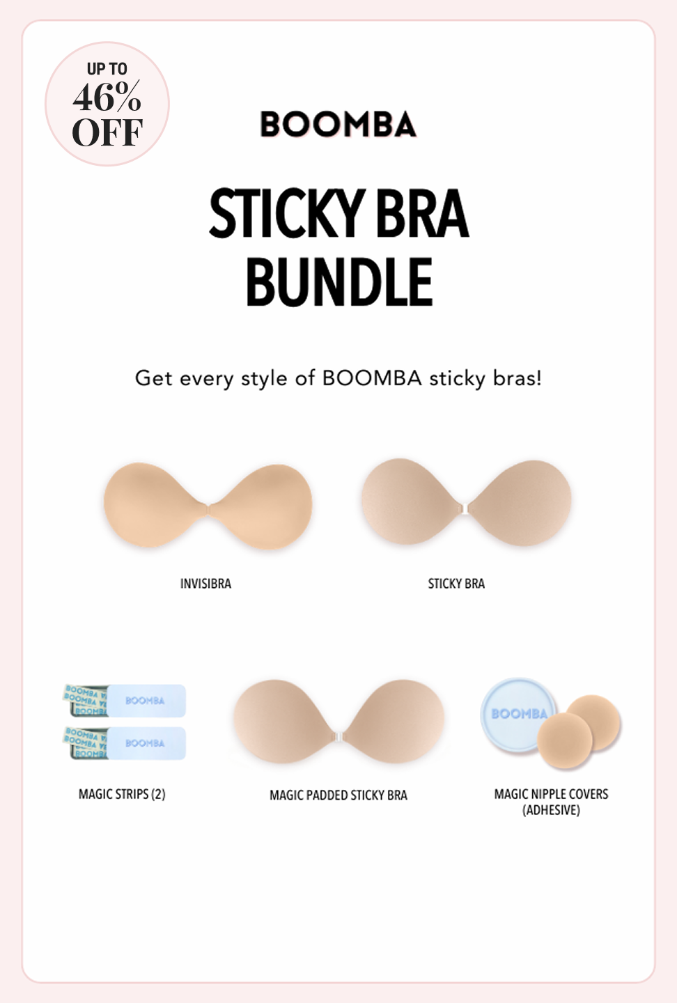 Snag all of the best-selling BOOMBA sticky bras in one amazing bundle.