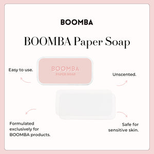 Introducing BOOMBA Paper Soap, specially formulated for BOOMBA products – the ultimate solution to keep your bras fresh and sticky for longer!