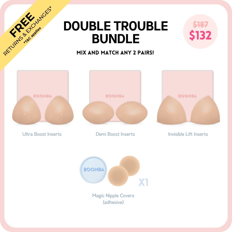Demi Boost: The shortened version of our Ultra Boosts. Lifts and adds 2 cup sizes, perfect for sweetheart necklines.