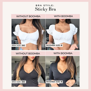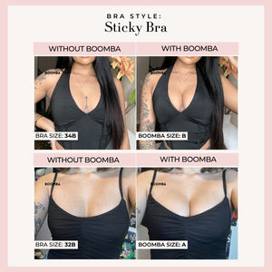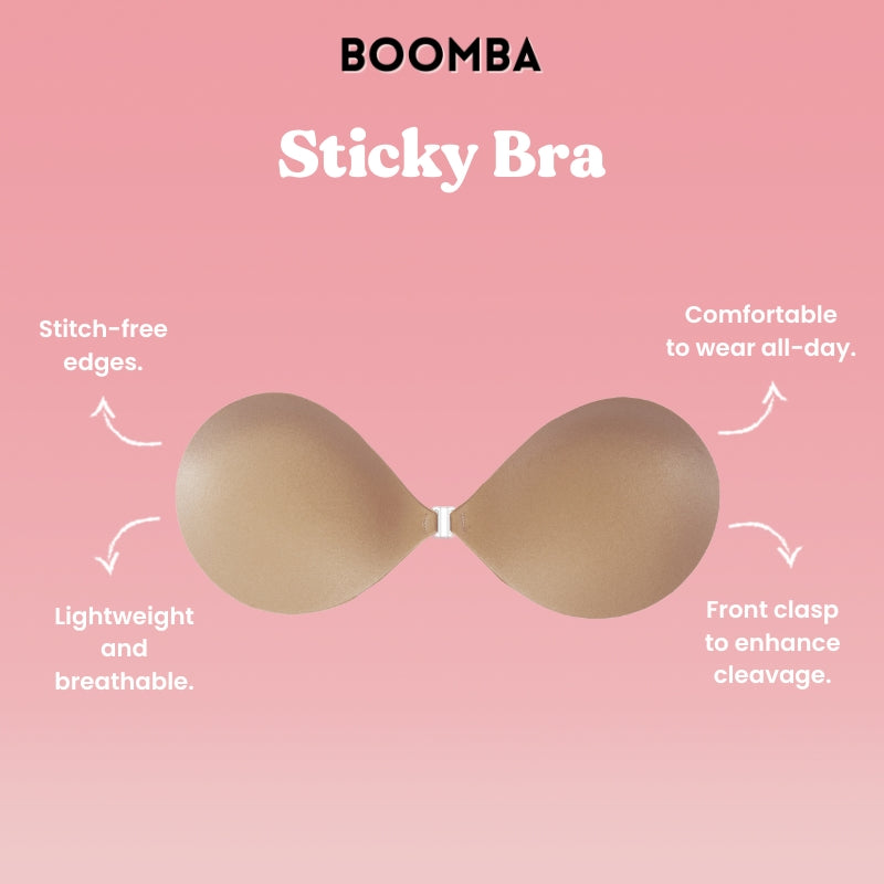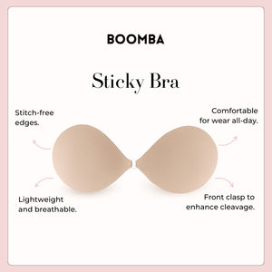 How to Remove: To remove your sticky bra, unclasp and gently peel off one cup at a time, starting from the top outer edge. Reapply protective films onto the sticky bra and store back into the BOOMBA gift box, away from direct sunlight.