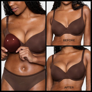 Check out BOOMBA’s Size Guide to find out which size is suitable for your body. Please note that results may vary depending on breast size and shape. Results will be similar to a double push up bra. BOOMBA results work best with natural breasts.