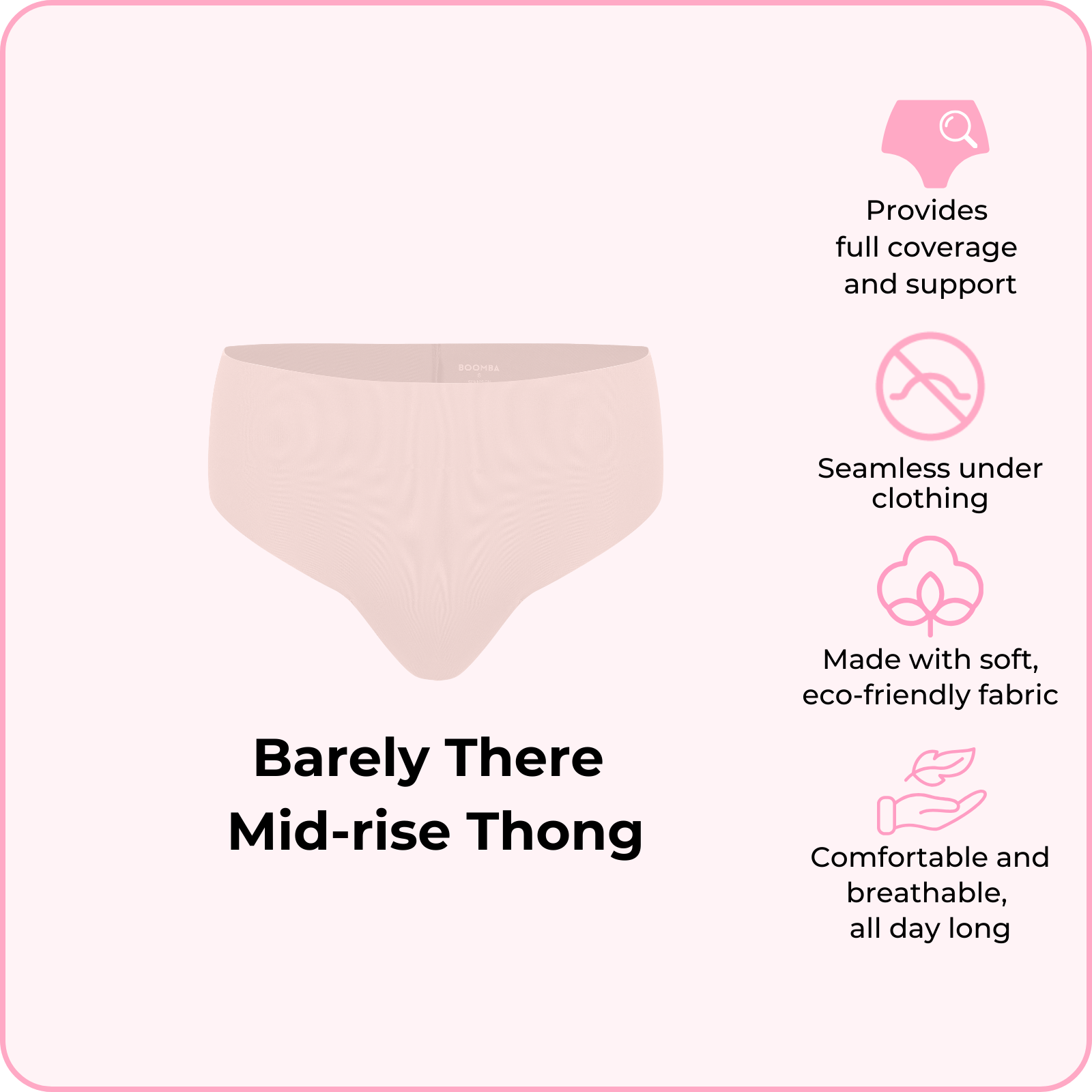 Introducing the BOOMBA Barely There Mid-Rise Thong – like a second skin, but way cuter! Made from ultra-soft, seamless fabric, this little beauty gives you all-day comfort and stays invisible under clothes. The mid-rise fit offers the perfect balance of coverage and style, making it ideal for everyday wear. It’s the little secret you’ll never want to take off!