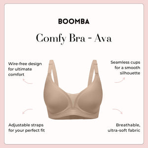 Meet Ava, the bra that actually understands what you need. No wires poking, no fidgeting all day, just soft support that moves with you. The fabric feels buttery against your skin, and the seamless cups keep things smooth under anything you wear.