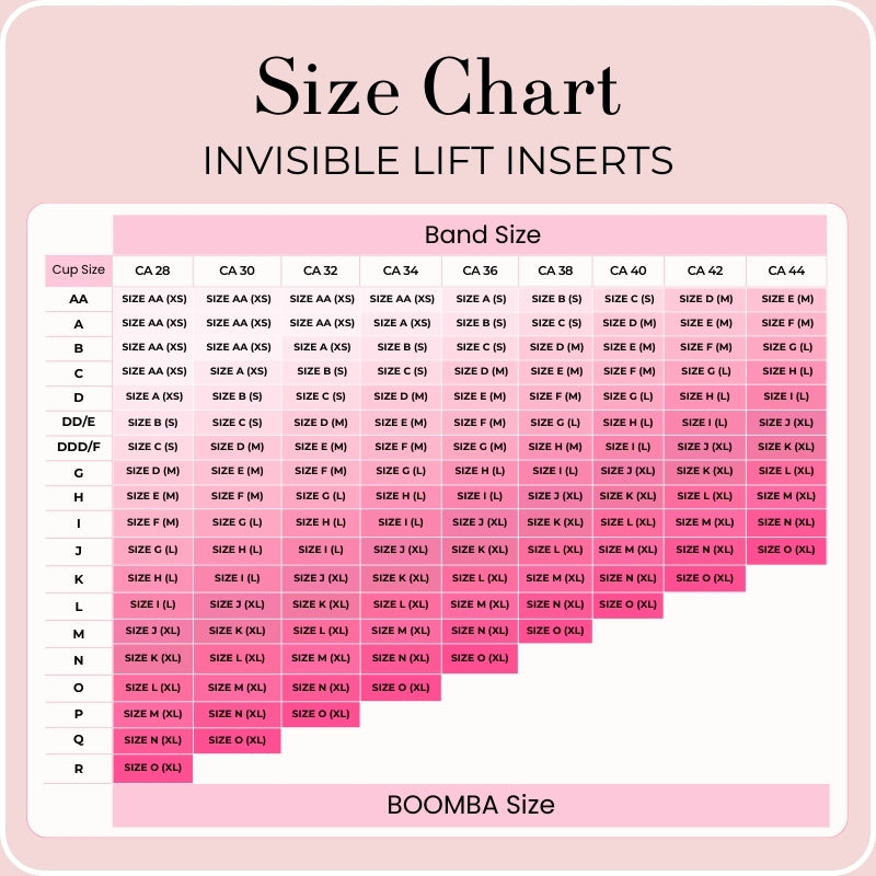 For Invisible Lift, size Extra-Small will be shipped for sizes AA and A, size Small will be shipped for B and C, size Medium will be shipped for sizes D, E and F, size Large will be shipped for sizes G, H, and I, and size X-Large will be shipped for sizes J, K, L, M, N, and O.