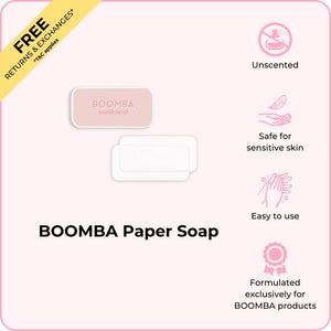 Introducing BOOMBA Paper Soap, specially formulated for BOOMBA products – the ultimate solution to keep your bras fresh and sticky for longer!