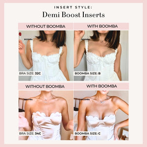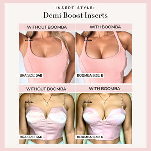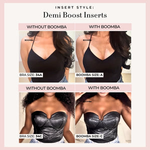 Demi Boost: The shortened version of our Ultra Boosts. Lifts and adds 2 cup sizes, perfect for sweetheart necklines.