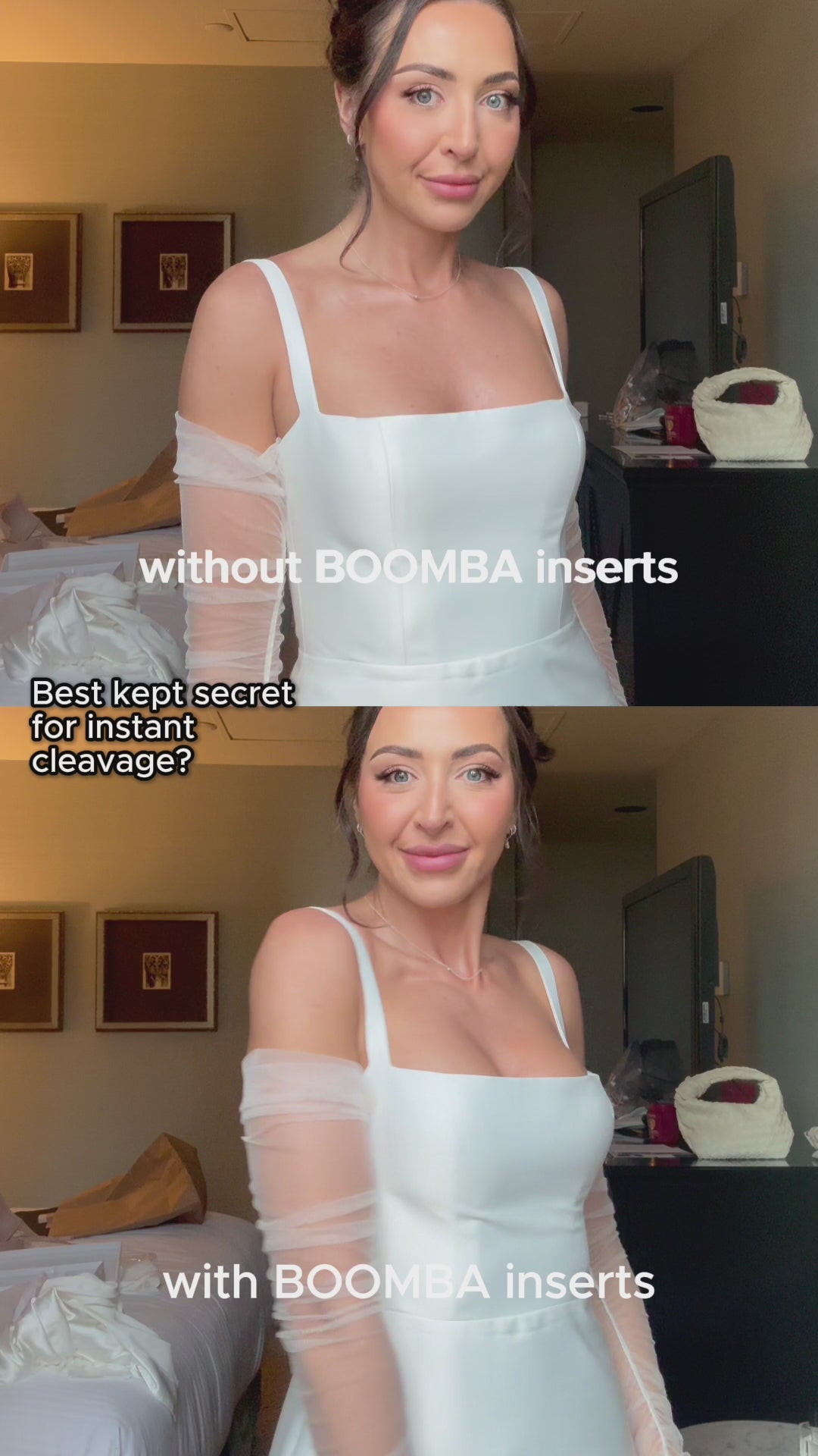 Unlike a sticky bra that is supported by the adhesive, BOOMBA inserts are supported by the clothing, they cannot stay up by themselves. It is crucial to wear them in tight, structured, and fitted tops.