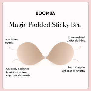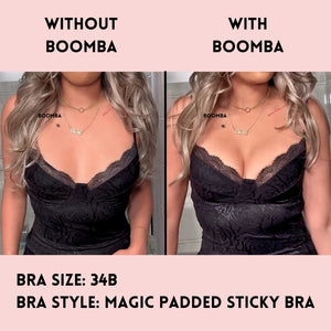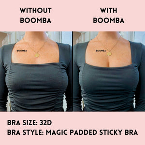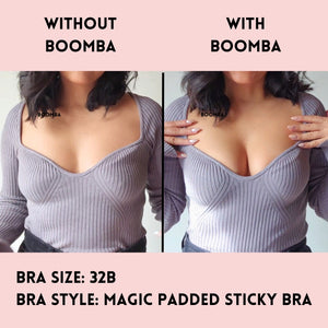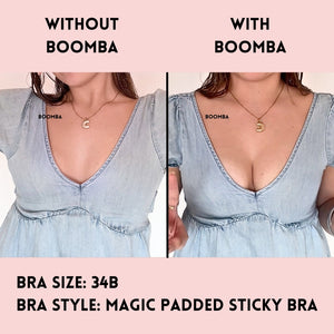 BOOMBA’s Magic Padded Sticky Bra is uniquely designed to add cup sizes discreetly.