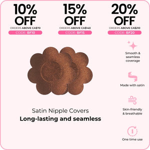 BOOMBA's Satin Nipple Covers lay seamlessly against your skin. Long-lasting and gentle, these nipple covers are a staple in every girl's wardrobe.