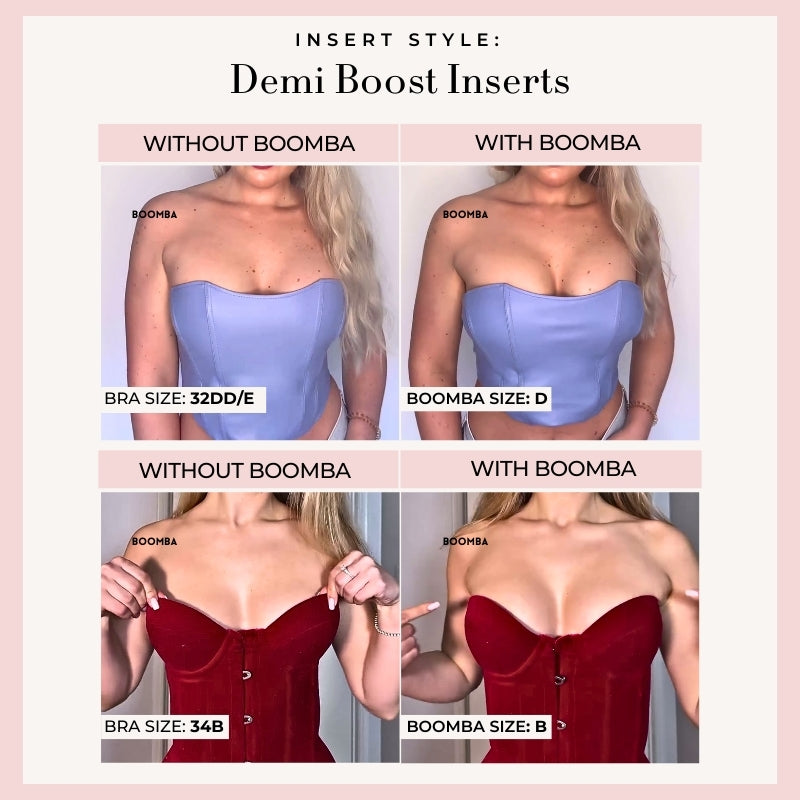 Demi Boost: The shortened version of our Ultra Boosts. Lifts and adds 2 cup sizes, perfect for sweetheart necklines.
