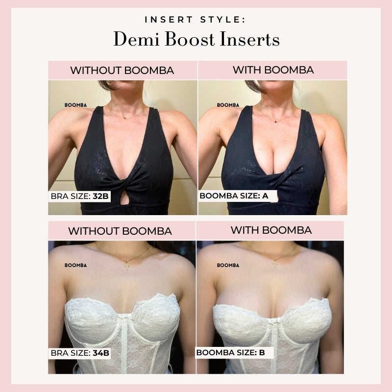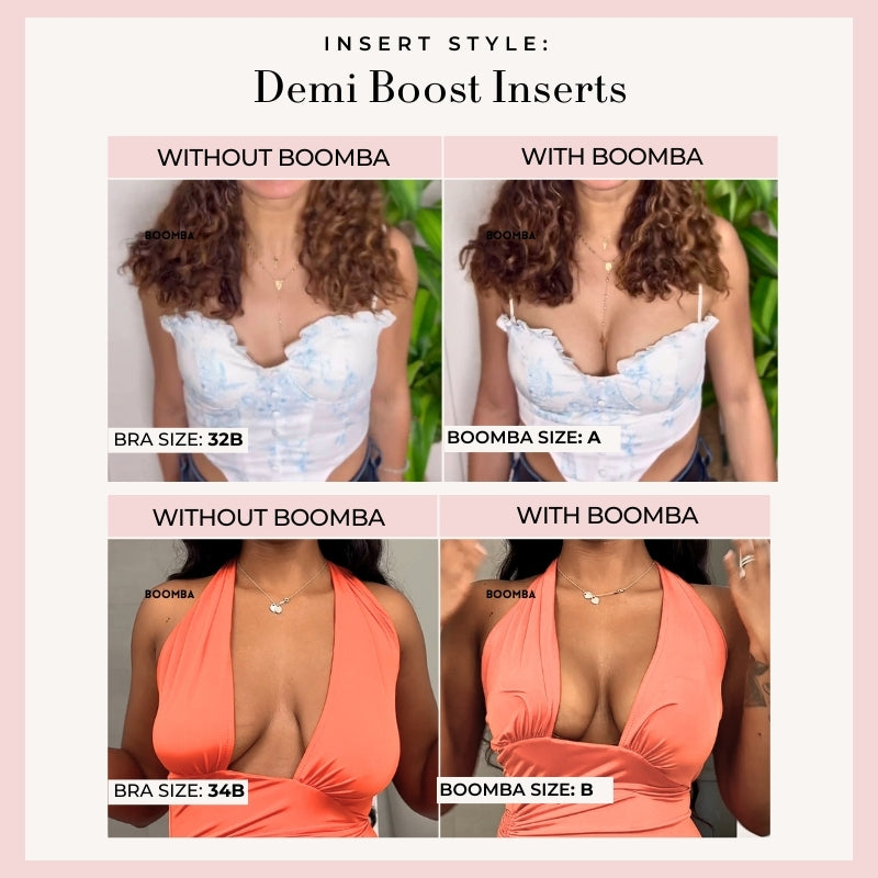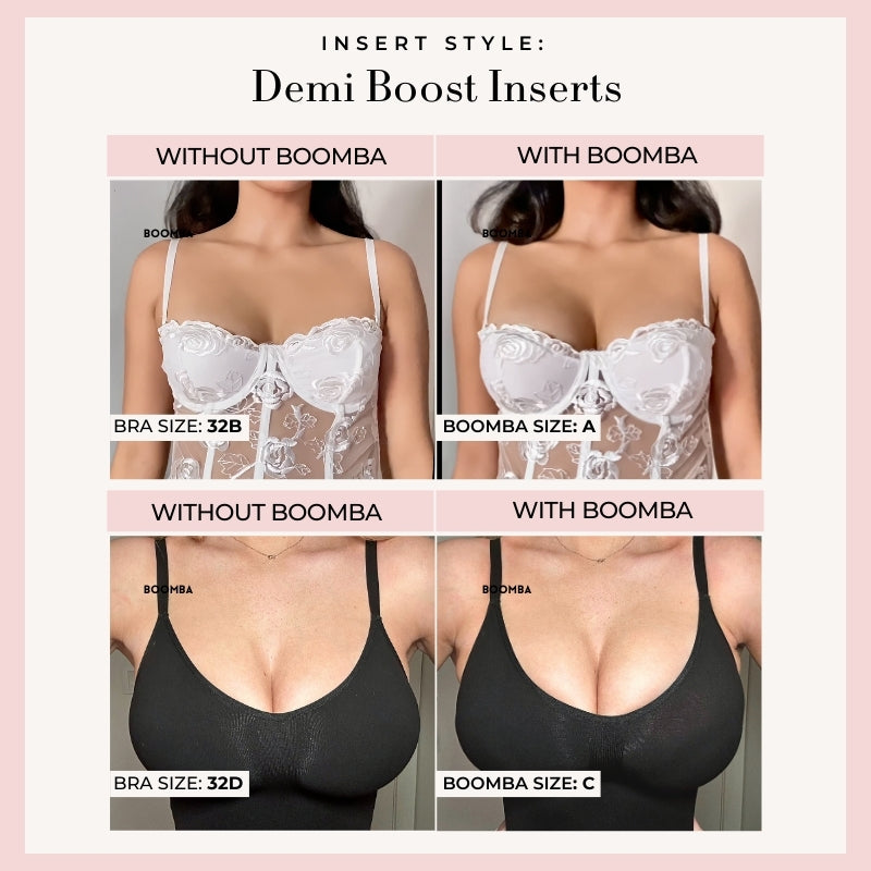 Demi Boost: The shortened version of our Ultra Boosts. Lifts and adds 2 cup sizes, perfect for sweetheart necklines.
